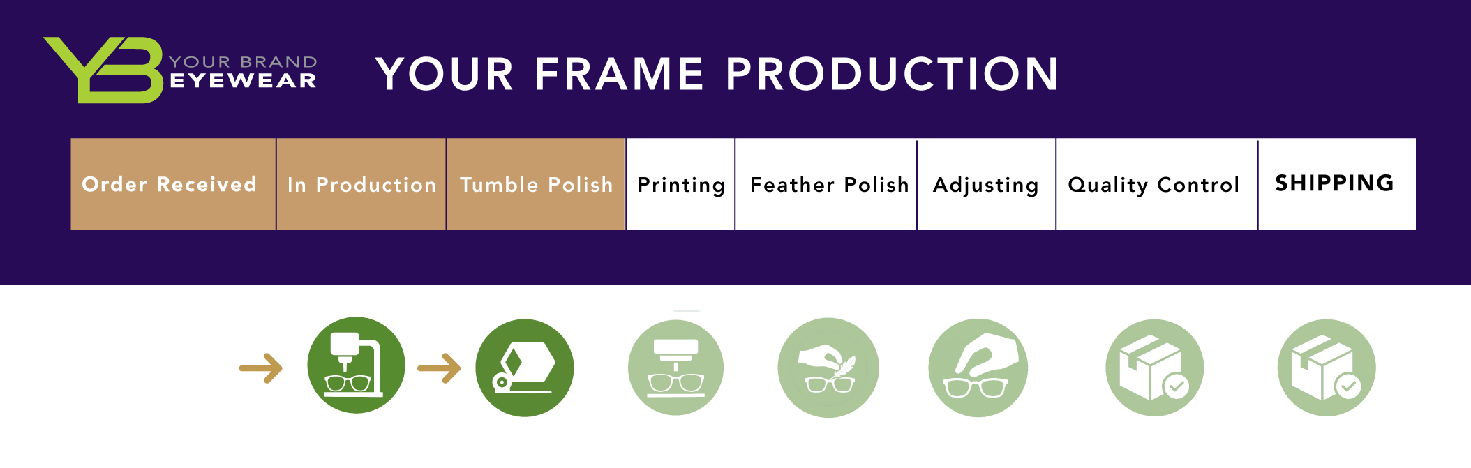 Once the rough tumbling stage is complete, your frames move to Printing, where your logos and branding are added.
